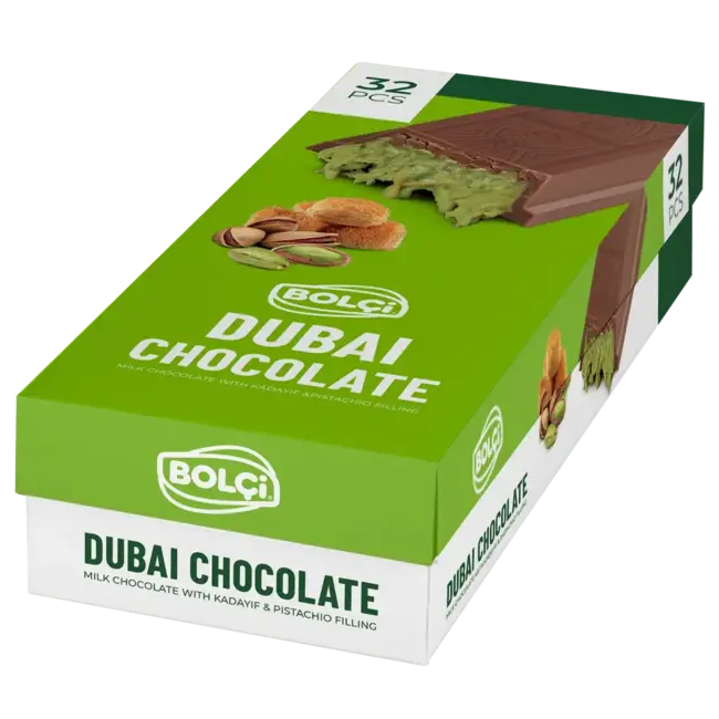 Bolci Dubai Chocolate Bar Kadayif and Pistachio, 1.05 oz, 32 ct
