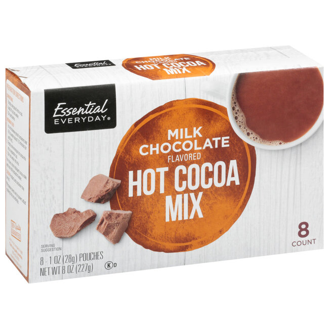 Essential Everyday Hot Cocoa Mix Milk Chocolate Flavored, 8 oz, 12 ct