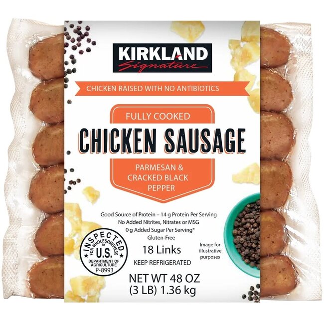 Kirkland Signature Chicken Sausage Links Parmesan & Cracked Black Pepper, 48 oz