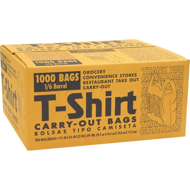 Poly-America Thank You/Gracias T-Shirt Carry-Out Bags 1/6 Barrel, 1000 ct